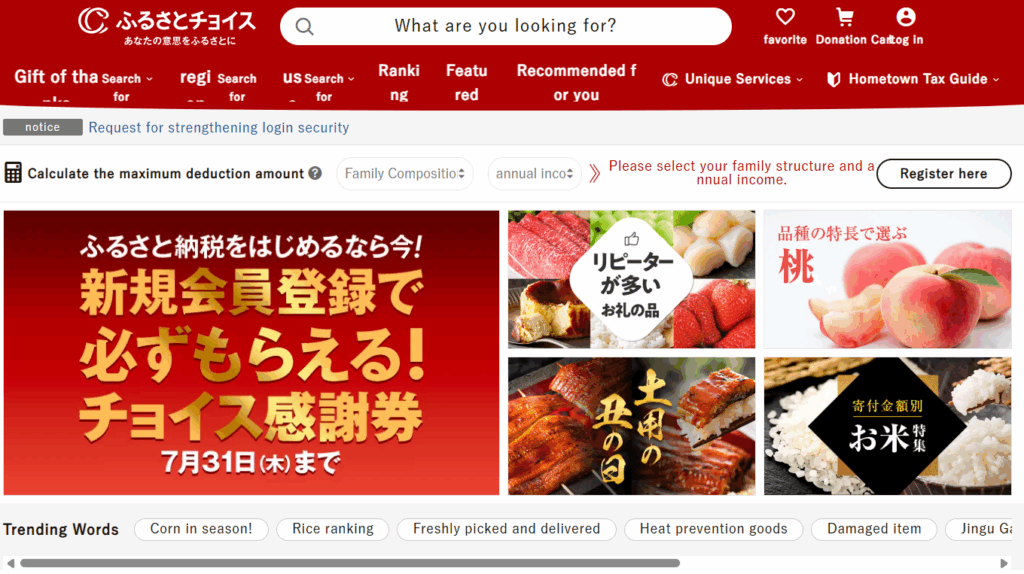 There are a lot of websites that you can do furusato nozei. Here are the 5 most popular websites that a lot of Japaneses also use, but you can choose based on your preference or main shopping channels that you use (such as Rakuten or Amazon) or their attractive campaign.