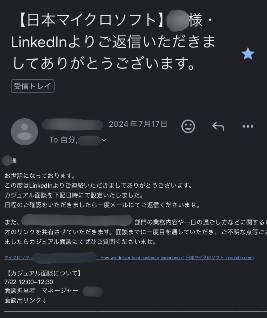 In the case of AWS and Microsoft Japan, I received a scout message from the recruiter recommending a position that matches my experience. I replied them, and they adjusted a casual online meeting with the recruiter. During the casual online meeting, the recruiter explained the company, environment, the role that they are hiring, work condition, and other details very nicely, and they asked my opinion if I want to proceed or not.